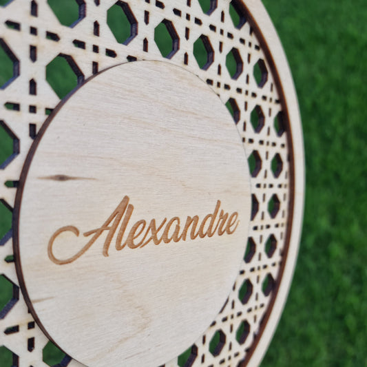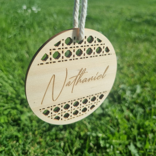 Rattan ornament with name - Round