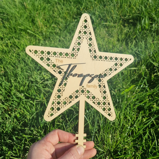 Rattan star with Family name - Christmas tree topper