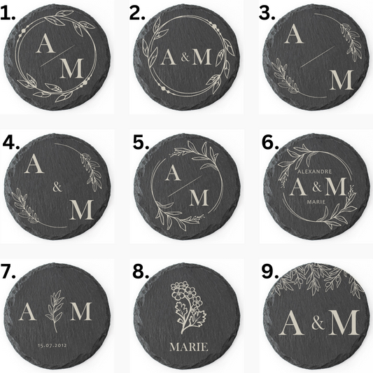 Slate coaster - Botanical design round