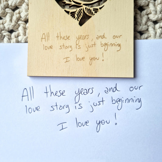 Wood cards - Rose in Heart - Own handwriting