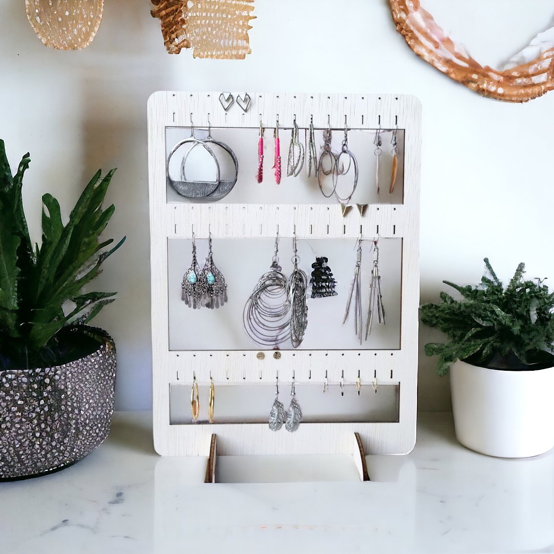 The display is suitable for earrings with loops, hooks or studs (as pictured).