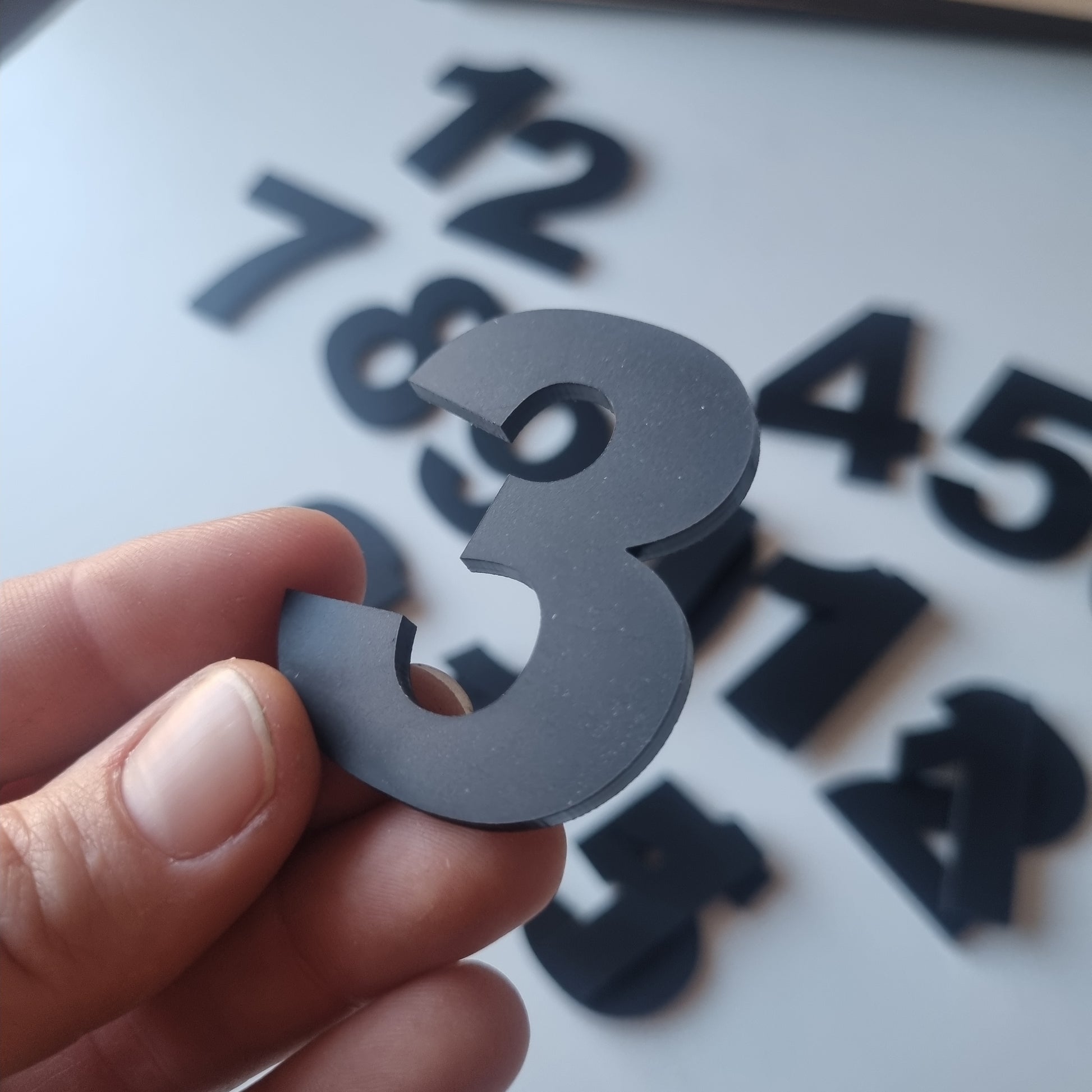 Laser cut symbol, letter, or number from acrylic or wood veneer.
