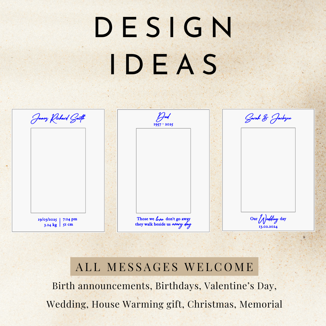 The frame is suitable for a 4x6 (10x15cm) picture size and comes with a glass screen.