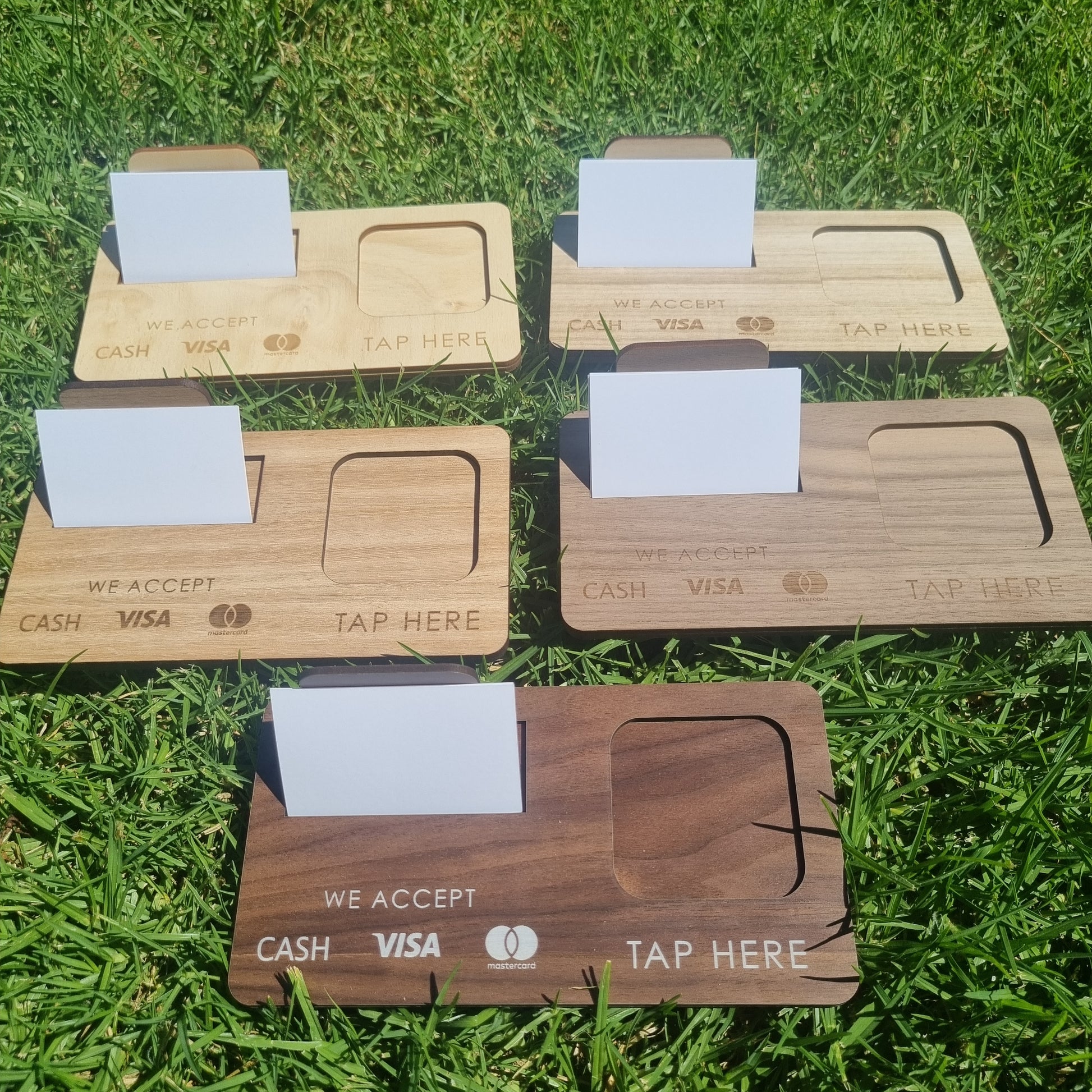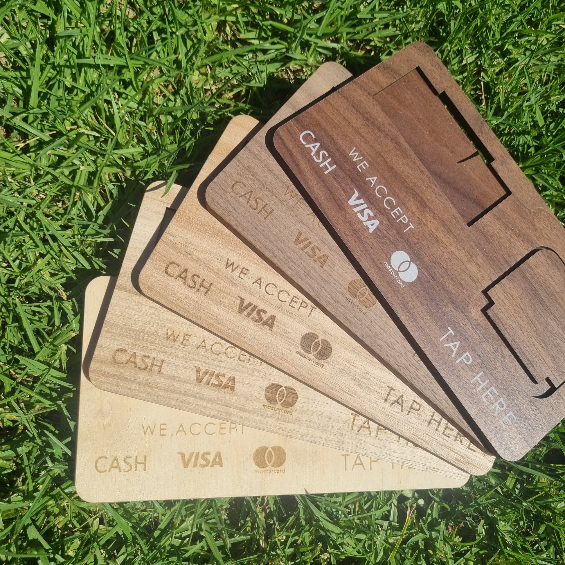 - Engraved icons of accepted payment methods